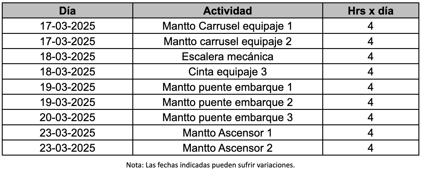 TABLA DE MANTENIMIENTOS MARZO 2026